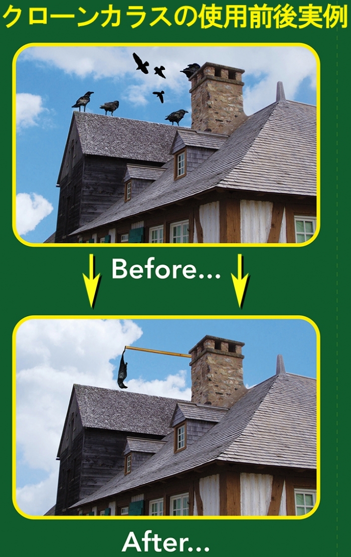 ビジュアルな視覚効果でカラスや鳩(ハト/はと)、ムクドリ・ヒヨドリ、スズメ・ツバメ等の害鳥忌避!