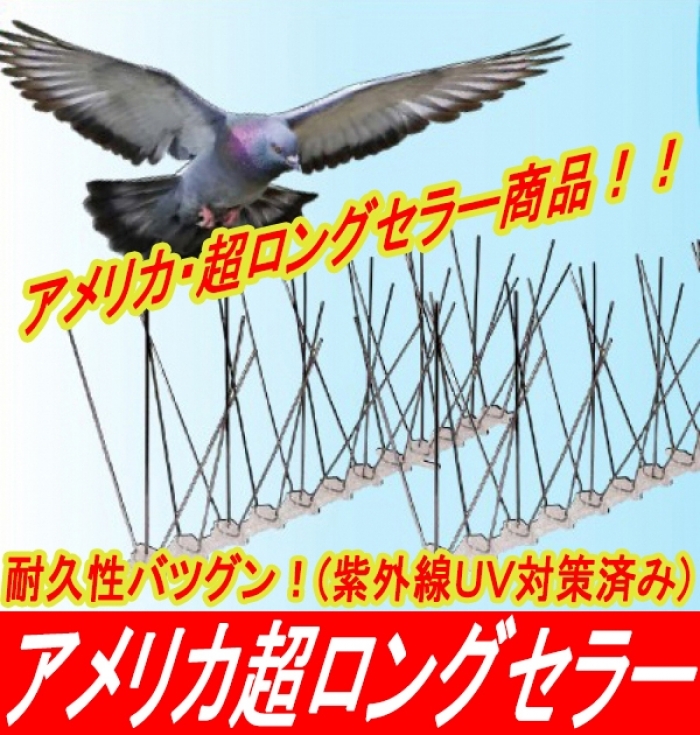 簡単設置で、カラス(烏/からす)・鳩(ハト/はと)・ムクドリ・ヒヨドリ・コウモリ・野良猫・野良犬・ハクビシン・イタチ対策! (アメリカで、カラス・ハト対策のロングセラーを独走中!また、コウモリ、野良猫・野良犬、ハクビシン・イタチ・たぬき・アライグマ・きつね、鹿・猿などの対策にも、大好評!) ロッドが細く至近距離からでも目立ちにくく、アメリカでは、美術館や博物館などの歴史的建造物や鉄道駅等でも、広く使われています。 ※どの害鳥・害獣も、みな、Newバード・スパイクのような“物理的な障害物”を避け寄り付かなくなる『学習能力』を持っていますので、Newバード・スパイクは、害鳥・害獣の対策にたいへん効果的で優れています!